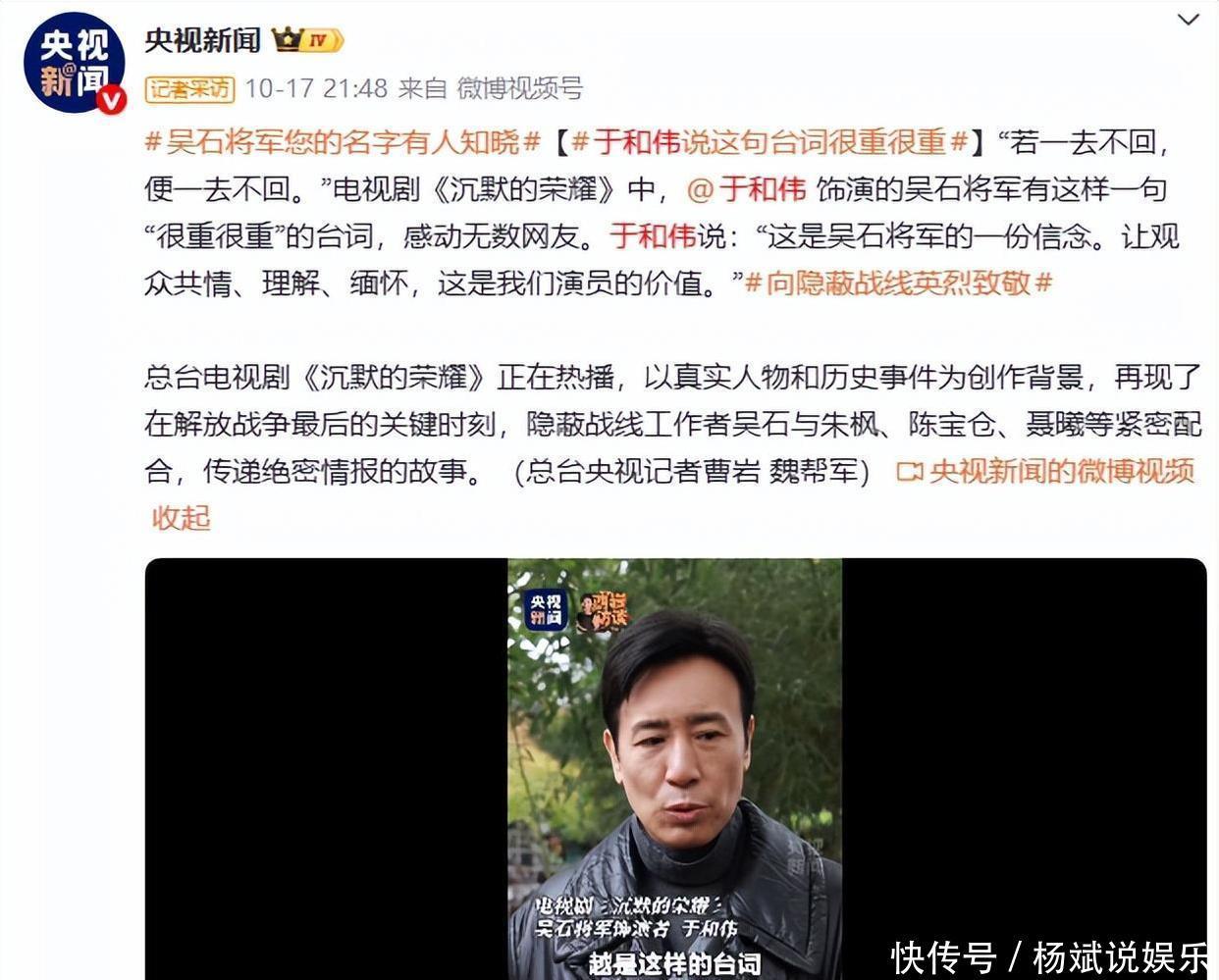 行走的教科书九月份的时候,央视播出了以英雄烈士吴石将军事迹为蓝本的《沉默的荣耀》。没有明星带来流量,也没有铺天盖地的宣发,却依然拿到3.07%的收视高峰。